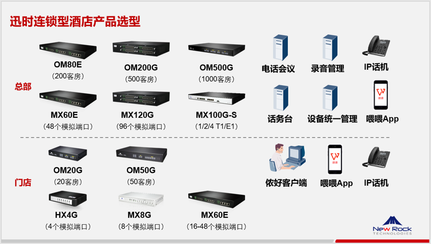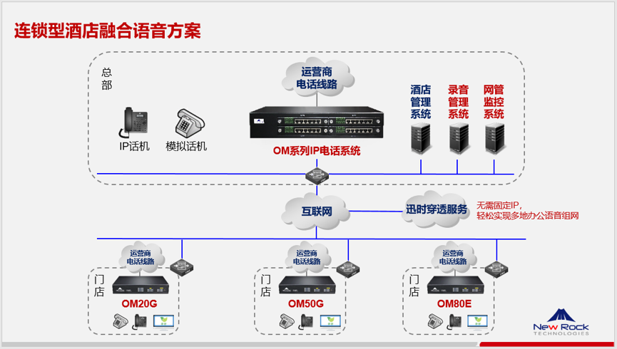 1、門店規模在200房間以內,每個門店部署OM系列IP-PBX。
