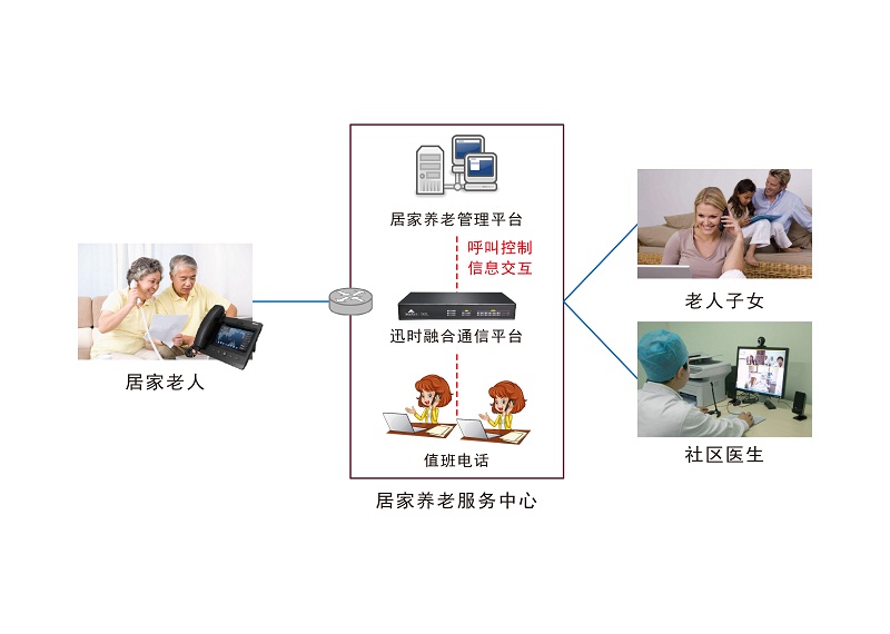 迅時聯合合作伙伴打造的居家養老服務管理系統,運用先進的音視頻通信技術、健康監測技術,為老人提供電話咨詢、緊急救助、健康監測、遠程監控等服務。