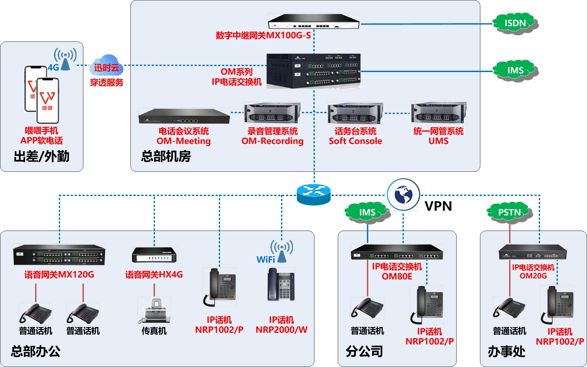 迅時(shí)大中型企業(yè)語音通信系統(tǒng)方案,以迅時(shí)OM系列電話交換機(jī)(IP-PBX)為核心,提供全面的溝通協(xié)作及便捷的開放能力,支持語音通話、視頻通話、高速傳真、電話會議、電話錄音、移動(dòng)分機(jī)等“一站式”業(yè)務(wù)融合,既適用于數(shù)百人到數(shù)千人規(guī)模的大中型企業(yè),也能通過設(shè)備堆疊或組網(wǎng)服務(wù)于數(shù)萬人規(guī)模的集團(tuán)企業(yè),具有高可靠、高安全、高穩(wěn)定、高性價(jià)比的特點(diǎn)。
