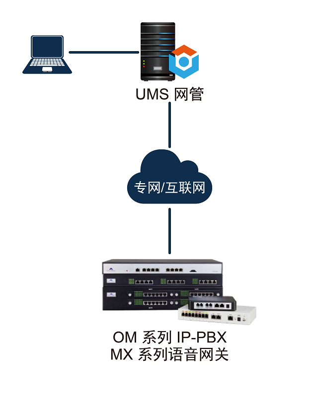 迅時設備統一管理系統(簡稱:UMS網管),用于對迅時的OM系列IP-PBX和MX系列語音網關進行統一管理和遠程運維,支持監控設備運行狀態、批量下發設備配置文件、升級設備軟件,有效幫助各類運營商、大中型集成項目、授權分銷商實現智簡設備管理,降低運維成本。
